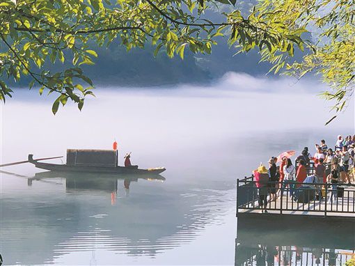7月22日,資興市小東江景區內,兩岸峰巒疊翠,湖面水汽蒸騰,雲霧繚繞,吸引了省內外游客前來賞景避暑。暑期來臨,我省多地景區採取限量、預約、錯峰等措施開展旅游活動,旅游市場逐漸回暖。記者 徐行 攝