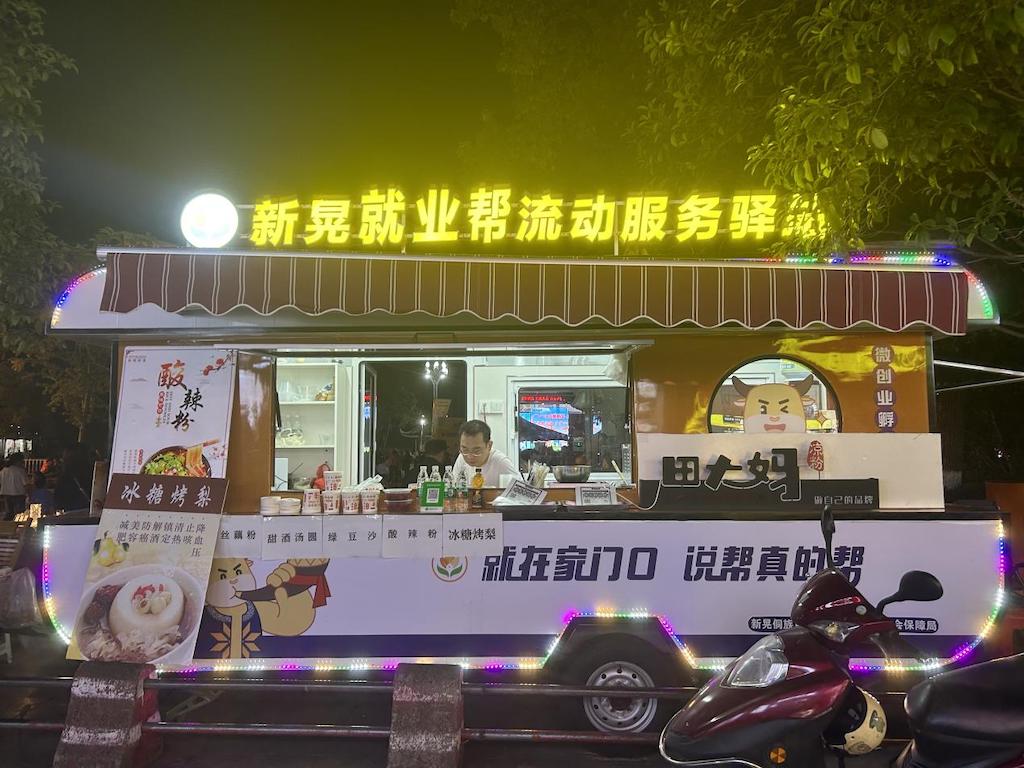 在新晃縣文體廣場,一輛售賣特色涼粉的卡通小黃車很是亮眼,這座可以開著走的小店是“牛幫幫”微創基地建設的試點項目。為幫助返鄉農民創業,新晃利用國有閑置經營性資產,免費為創業者提供為期一年的經營門面或辦公場所。