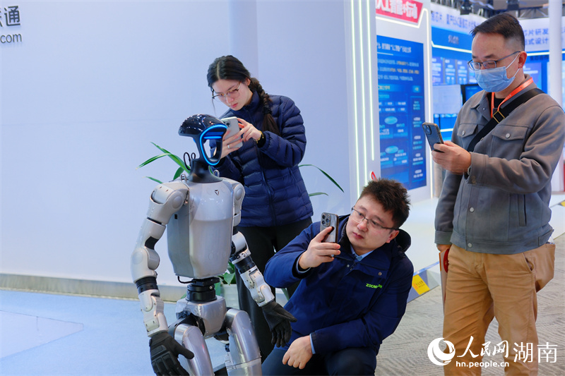 宇樹科技具身智能機器人互動引眾人拍照。人民網記者 吳茜薇攝
