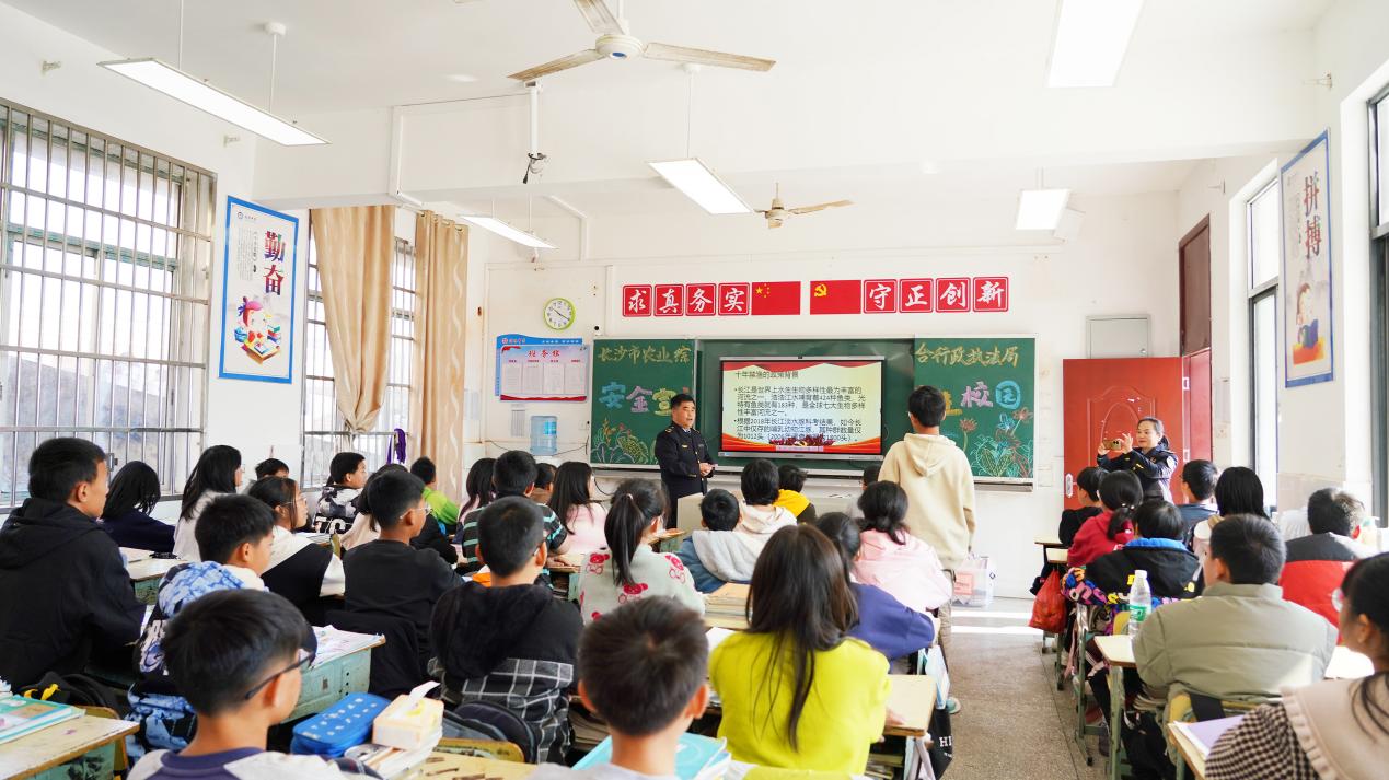 長沙市農業綜合行政執法支隊政協委員進校園宣講“十年禁漁”的重要意義。受訪單位供圖
