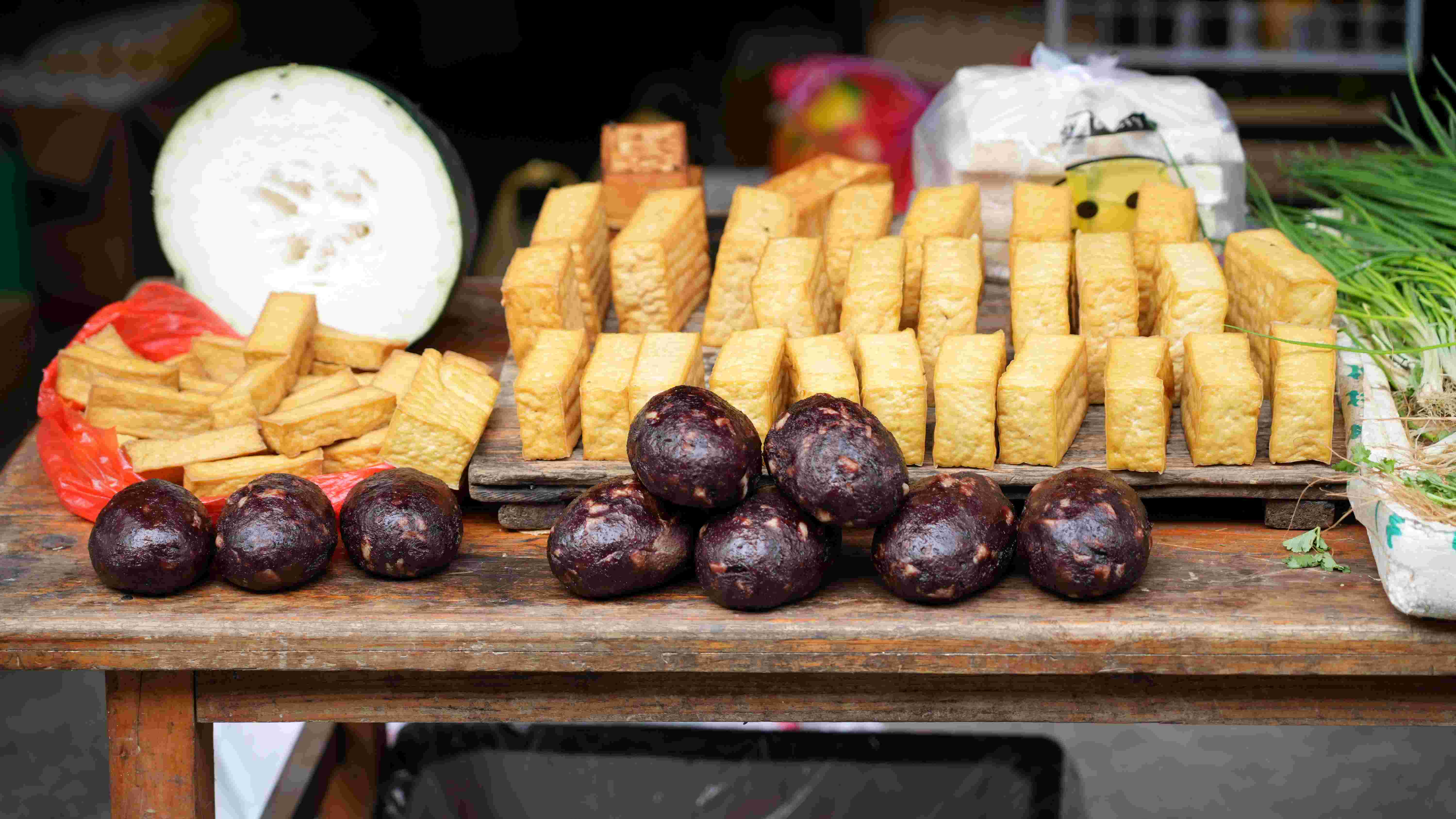 武冈特色美食香干、猪血丸子。高源鑫摄